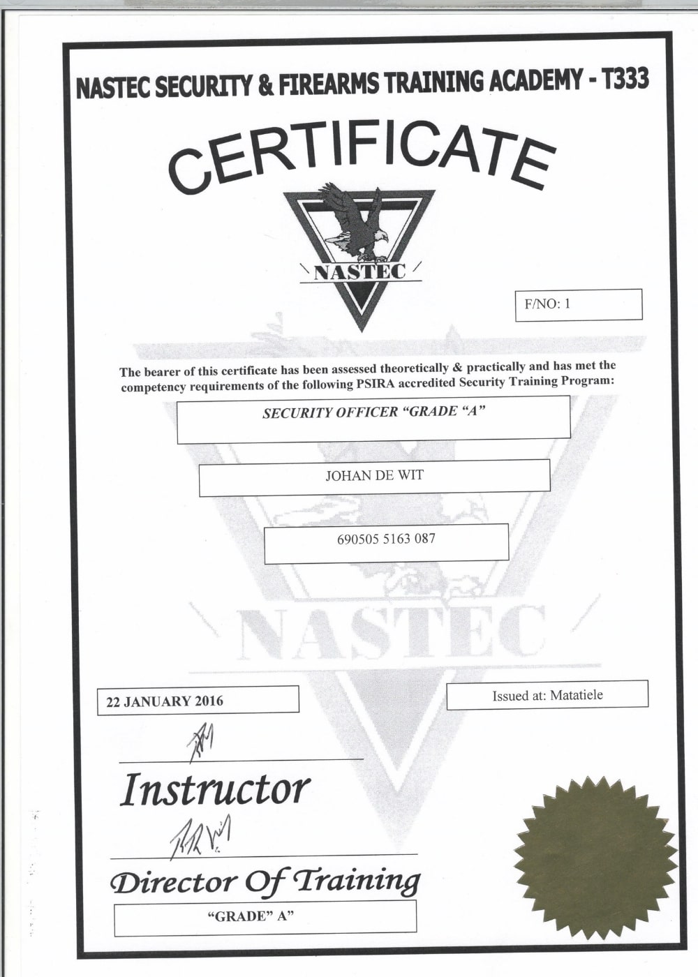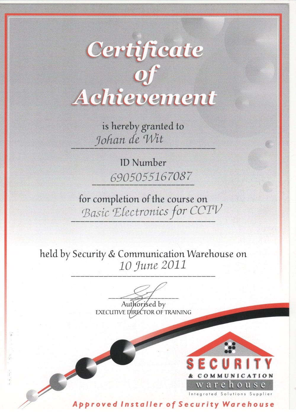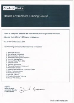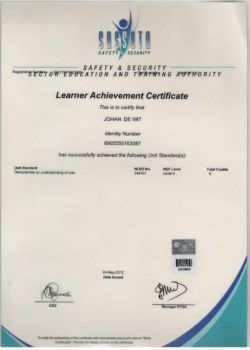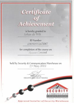 Hieronder is ‘n paar van die akkreditasie sertifikate wat mettertyd verwerf is – sommige van hulle het betrekking op sekuriteitstelsels, en sommige van hulle met betrekking tot ander sekuriteitsopleiding. Klik asseblief op enige van die geskandeerde prente om ‘n groter weergawe te sien: